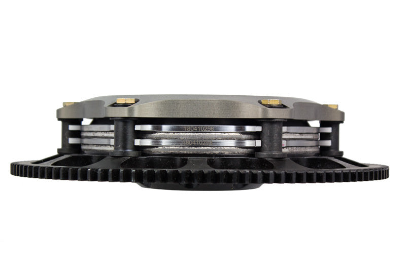 T1RR-H01 race, twin disc kits are race-ready for the serious enthusiast who needs a direct bolt-in kit, requiring no additional modifications. ACT's sintered iron race discs offer the highest torque capacity of all ACT race discs and have ultra-high heat capacity. Most kits offer pedal loads 10-20% higher than stock, yet increasing the clamp load by 80-90%. All ACT twin disc kits include a CNC-machined and dynamically balanced flywheel for trouble free use. All kits undergo an exclusive four-stage, heat-treating process on all diaphragms. ACT twin disc kits include a pressure plate, two discs, floater, flywheel and alignment tool. Some kits may include a pilot bearing and release bearing. ACT Twin disc kits meet SFI Specification 1.2.